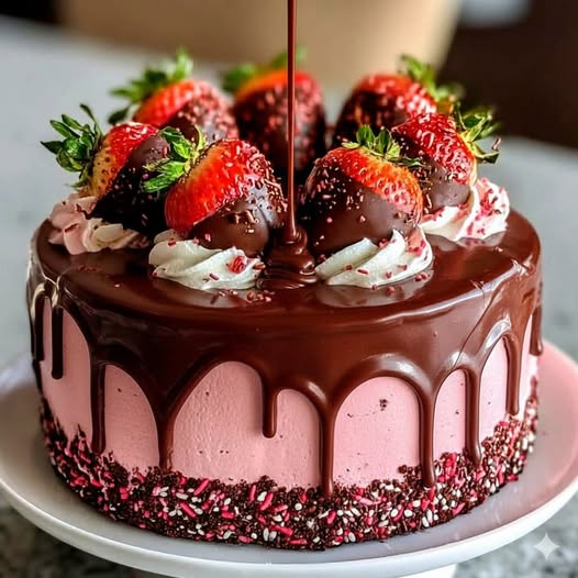 Chocolate-Dipped Strawberry Mousse Cake COMPONENTS Moist chocolate cake base Fresh strawberry purée mousse Chocolate ganache + chocolate dipped strawberries on top 1) Chocolate Cake Layer Ingredients: 1 cup flour 1 cup sugar ⅓ cup cocoa powder 1 tsp baking powder ½ tsp baking soda Pinch of salt ½ cup milk…